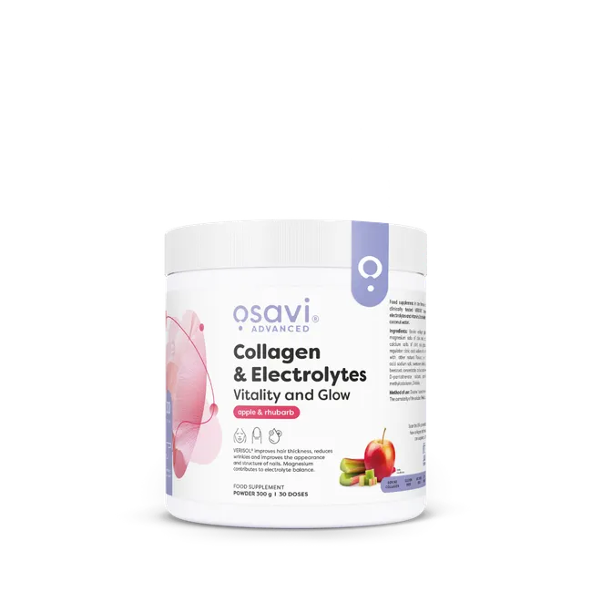 Collagen & Electrolytes Vitality and Glow is a food supplement in powder form containing VERISOL® bioactive collagen peptides, electrolytes, vitamins, hyaluronic acid, and coconut water powder....