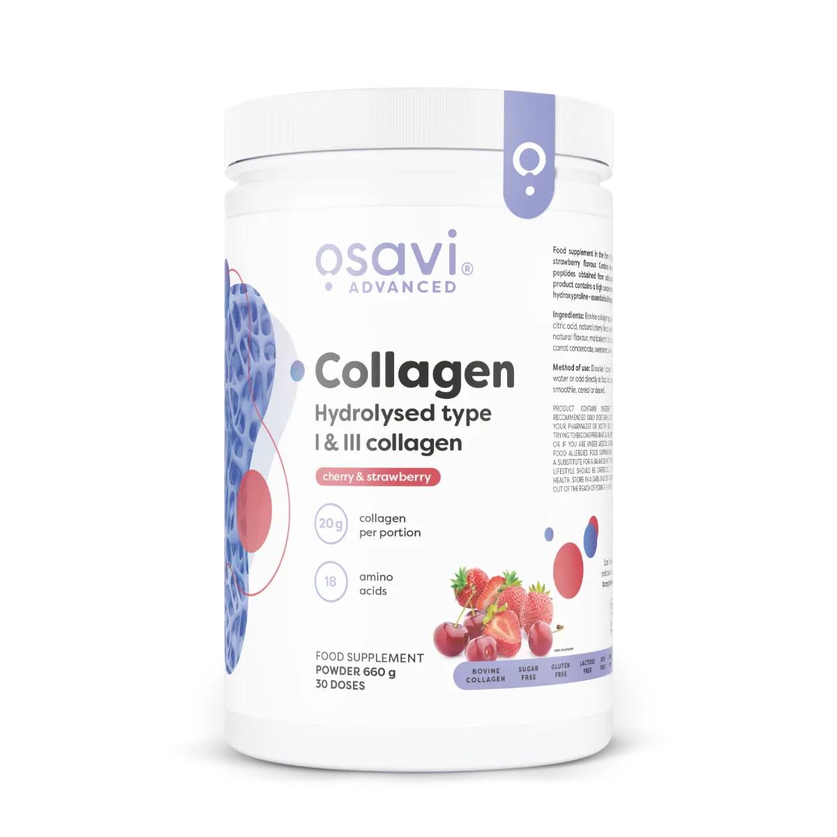 OSAVI Collagen Hydrolysed Type I & III is a food supplement in powder form containing highly purified hydrolysed bovine collagen peptides obtained from collagen types I...