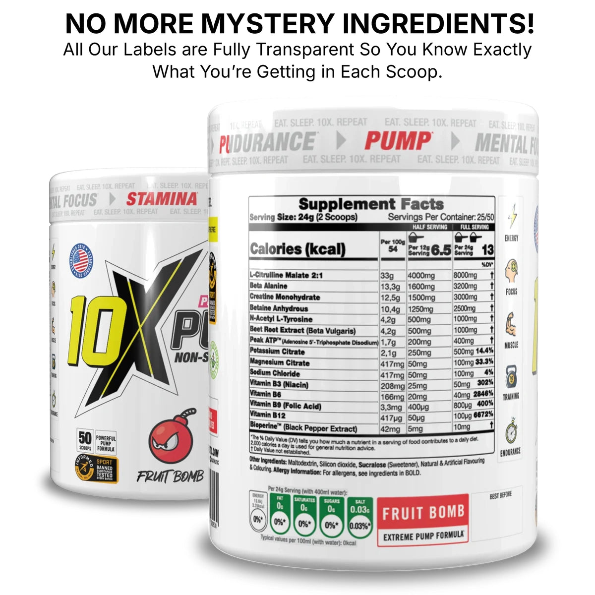 10X Athletic PUMP 600g — Caffeine-Free Pre-Workout