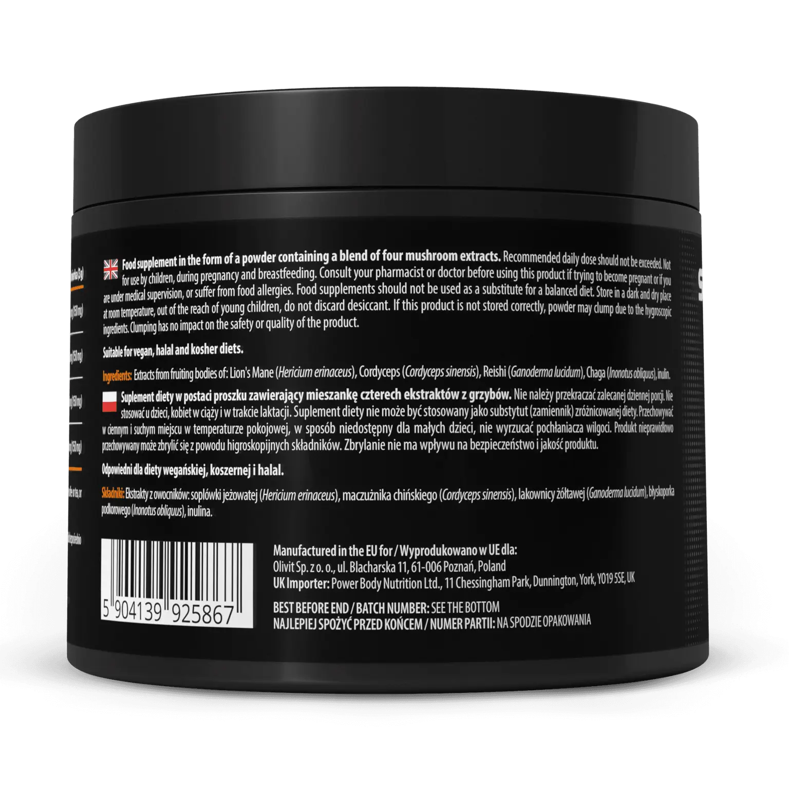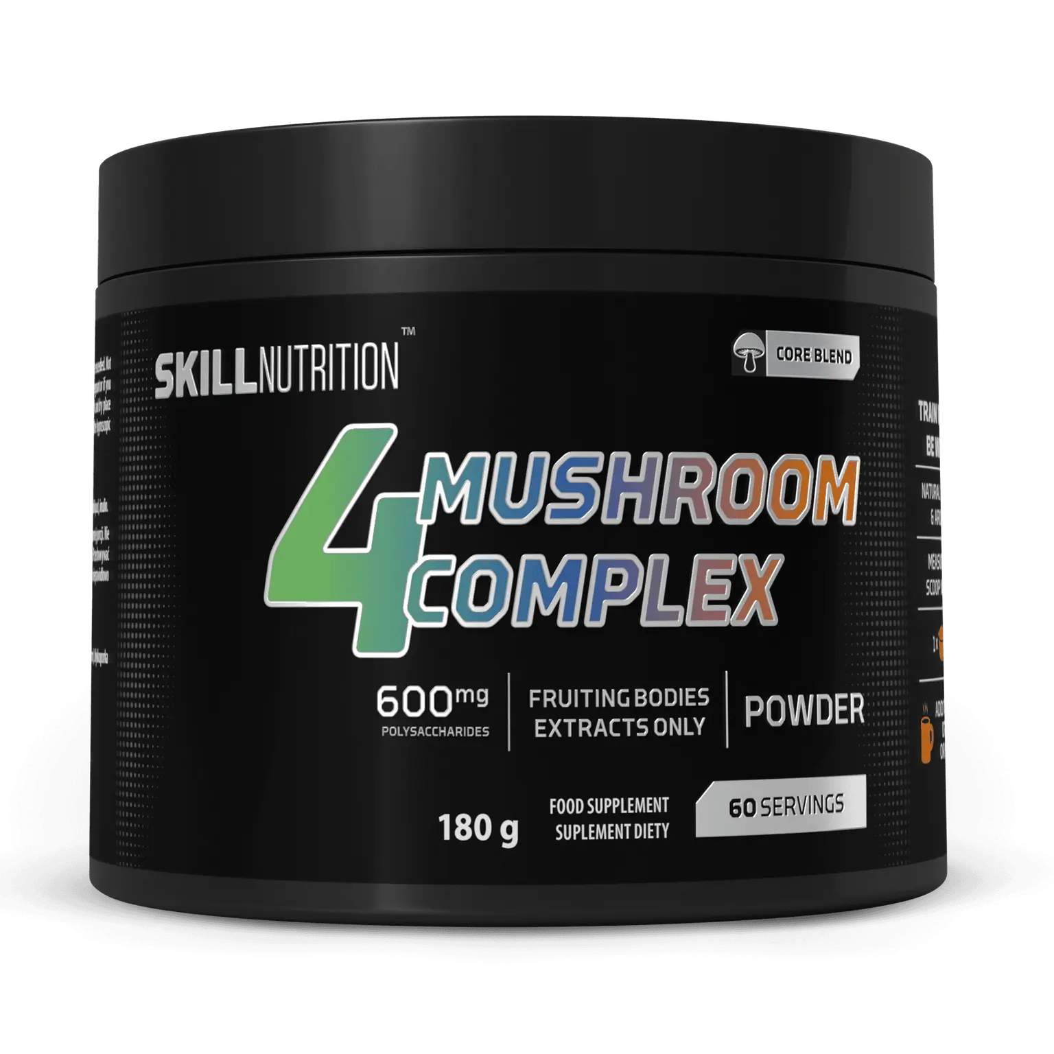 SkillNutrition 4 Mushroom Complex is a powdered food supplement formulated for adults who wish to support daily nutrition as part of a balanced diet and healthy lifestyle. It combines extracts from four carefully selected mushroom fruiting bodies in a convenient, easy-to-use powder form.