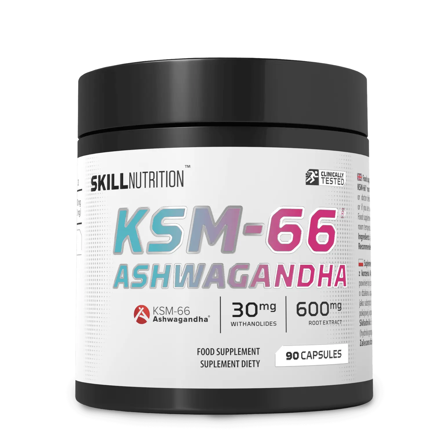 SkillNutrition Ashwagandha KSM-66® is a food supplement formulated for adults who wish to support daily nutrition as part of a balanced diet and healthy lifestyle. It provides ashwagandha root extract in the form of KSM-66®, a well-established and widely used extract derived exclusively from the root.