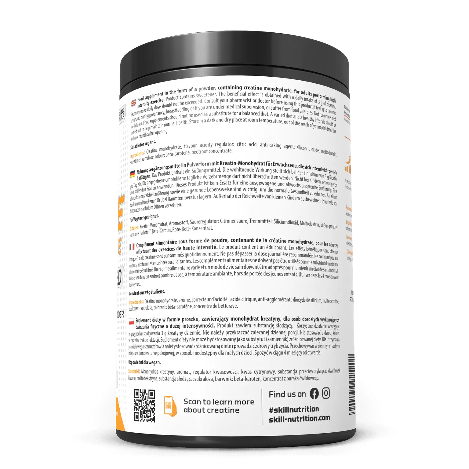 SkillNutrition Micronised Creatine Monohydrate is a powdered food supplement designed for adults who engage in regular or high-intensity training as part of an active lifestyle. It provides creatine monohydrate in its simplest and most widely used form, suitable for daily supplementation alongside a balanced diet.