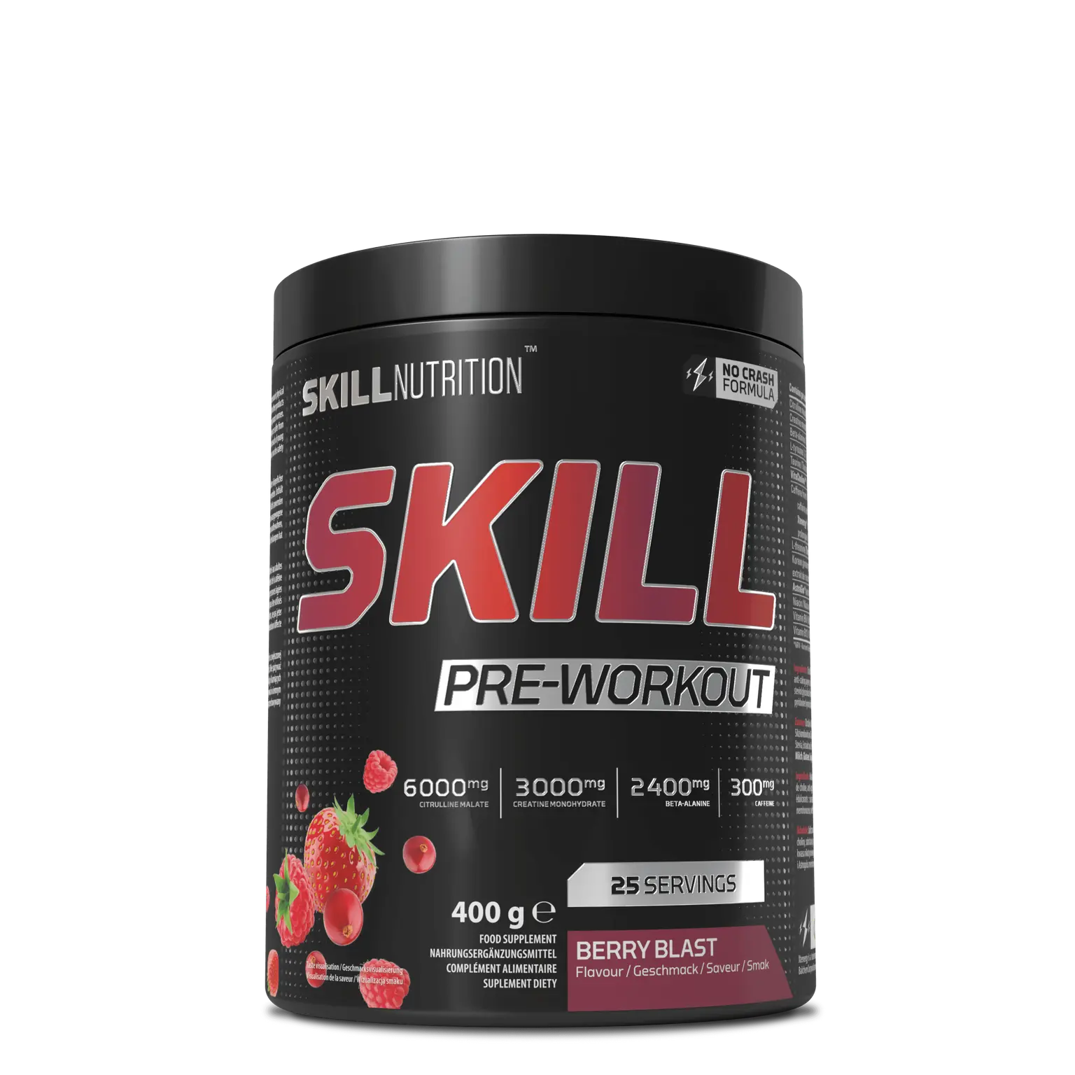 SkillNutrition Skill Pre-Workout is a powdered food supplement formulated for adults with increased physical activity who include training sessions as part of an active lifestyle. It provides a convenient pre-workout option designed to fit into a balanced diet and structured training routine.